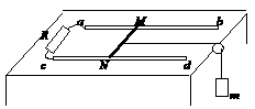 如图,在水平桌面上放置两条相距l的平行光滑金属导轨ab与cd,阻值为R的电阻与导轨的a、c端相连。金属滑杆MN垂直于导轨并可在导轨上滑动。整个装置放于匀强磁场中,磁场的方向竖直向上,磁感应强度的大小为B。滑杆与导轨电阻不计,滑杆的中点系一不可伸长的轻绳,绳绕过固定在桌边的光滑轻滑轮后,与一质量为m的物块相连,拉滑杆的绳处于水平拉直状态。现若从静止开始释放物块,用I表示回路中的感应电流,g表示重力加速度,则在物块下落过程中物块的速度可能 ( )