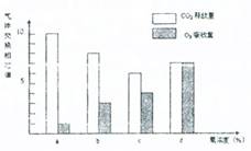 下图表示某植物的非绿色器官在氧浓度为a、b、c、d时,CO2释放量和O2吸收量的变化。下列相关叙述正确的是