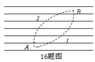 16.如图所示,平行直线表示电场线,但未标方向,带电量为+10-2C的微粒在电场中只受电场力作用,由A点移到B点,动能损失0.1J,若A点电势为-10V,则( )
