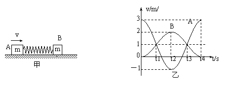 21.如图甲所示,一轻弹簧与质量分别为m1和m2的两物块A.B相连接,并静止在光滑的水平面上,现使A瞬时获得水平向右的速度3m/s,以此刻为计时起点,两物块的速度随时变化的规律如图乙所示,从图象信息可得