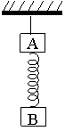 物体 A和B用轻质弹簧连接,悬于绳下静止不动,如图所示,A和B质量都是M,现将悬绳剪断,两物体开始下落,连接它们的弹簧的长度将发生变化。当弹簧的长度为原长时,A的速度为v,B的速度为u,则(