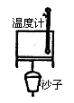 一物理爱好者利用如图所示的装置研究气体压强、体积、温度三者之间的关系,导热良好的汽缸开口向下,内有理想气体,汽缸固定不动,缸内活塞可自由移动且不漏气,一温度计通过缸底小孔插入缸内,插口处密封良好,活塞下挂一个沙桶,沙桶装满沙子时活塞恰好静止,现给沙桶底部钻一个小洞,细沙缓慢漏出,外部温度恒定不变,则( )