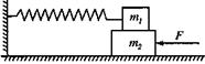 kg的两物体,叠放在动摩擦因数为0.40的粗糙水平地面上,一处于水平位置的轻弹簧,劲度系数为200N/m,一端固定于墙壁,另一端与质量为m1的物体相连,弹簧处于自然状态,现用一水平推力F作用于质量为m2的物体上,使它缓慢地向墙壁一侧移动,取g=10m/s2,当移动0.50m时,两物体间开始相对滑动,这时水平推力F的大小为( )