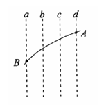 如图所示,一带电粒子在电场中沿曲线AB运动,从B点穿出电场。a、b、c、d为该电场中的等势面,这些等势面都是互相平
