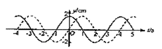 一列横波在x轴上传播,在x=0与x=1㎝的两点的振动图线分别如图中实线和虚线所示。由此可以得出 ( )