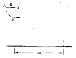 ,秋千的质量不计,秋千的摆长为R,男演员落地点C与O点的水平距离为8R。求
