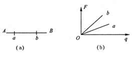 18.图(a)中AB是某电场中一条电场线,图(b)为放在电场线上a、b两点的检验电荷的电量与所受电场力大小间的函数关系,指定电场力方向由A向B为正向,由此可判定( )