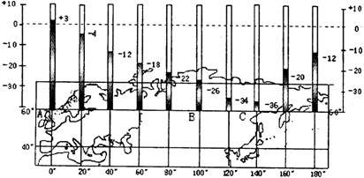 图为“北纬60度一月份海陆气温示意图”。读图完成71-72题。