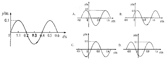 16.一列简谐横波沿x轴负向传播,波速v=4 m/s,已知坐标原点(x=0)处质点的振动图象如图左所示,在下列4幅图中能够正确表示t=0.15 s时刻波形的图是 ( )