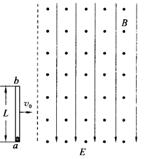25.(22分)如图所示,在竖直平面内放置一长为L的薄壁玻璃管,在玻璃管的a端放置一个直径比玻璃管直径略小的小球,小球带电荷量为-q、质量为m。玻璃管右边的空间存在着匀强电场与匀强磁场的复合场。匀强磁场方向垂直于纸面向外,磁感应强度为B;匀强电场方向竖直向下,电场强度大小为mg/q。电磁场的左边界与玻璃管平行,右边界足够远。玻璃管带着小球以水平速度v0垂直于左边界向右运动,由于水平外力F的作用,玻璃管进入磁场后速度保持不变,经一段时间后小球从玻璃管b端滑出并能在竖直平面内自由运动,最后从左边界飞离电磁场。设运动过程中小球的电荷量保持不变,不计一切阻力。求: