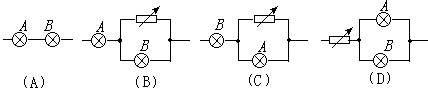 17.如图所示,A、B两灯分别标有“110V、100W”和“110V、40W”,按不同方法接入220V电路,能使两灯正常发光,且电路中消耗功率最小的是( )