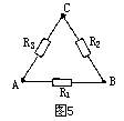 18.三只阻值相等的电阻连接成图5所示的电路,由于某种原因,其中有一只电阻的阻值发生了变化,导致RAB>RBC则可能的原因是( )