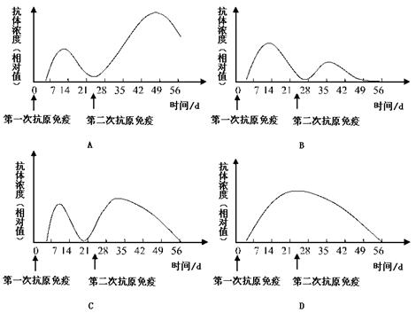 54. 一般情况下,用抗原使机体产生免疫反应,血清中抗体浓度会发生相应变化。如果第二次免疫与第一次免疫所用的抗原相同且剂量相等,下列四图中能正确表示血清中抗体浓度变化的是( )