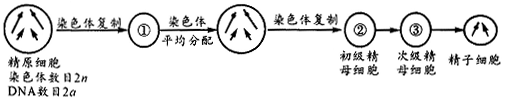 下图为精原细胞增殖以及形成精子过程示意图。设①③细胞都处于染色体的着丝点向两极移动的时期。据图分析,下列叙述不正确的是( )