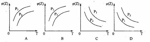 9.反应X(g)+3Y(g) 2Z(g);H<0在不同温度、不同压强(P1<P2)下,达到平衡时,混合气体中Z的体积分数
