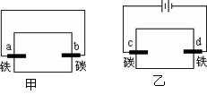 12. 滴有酚酞和氯化钠试液的湿润滤纸分别做甲、乙两个实验,能发现附近变成红色的电极是( )
