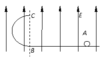 (18分)如图所示,竖直放置的半圆形绝缘轨道半径为R,下端与绝缘水平面平滑连接,整个装置处于方向竖直向上的匀强电场中E中,一质量为m,带电量为+q的物块(可视为质点),从水平面上的A点以初速度v0水平向左运动,沿半圆形轨道运动恰好通过最高点C,场强大小为E(E<mg/q),