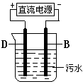 ⑷电浮选凝聚法是工业上采用的一种污水处理方法,右图是该方法处理污水的实验装置示意图(B、D金属单质作电极)。实验过程中,污水的pH始终保持在5.0~6.0之间。接通电源后,阴极产生的气体将污物带到水面形成浮渣而刮去,起到浮选净化作用;阳极产生的沉淀具有吸附性,吸附污物而沉积,起到凝聚净化作用。阳极的电极反应有两个,分别是2H2O-4e-=