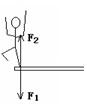 如图,运动员站在水平跳台上,图中F1表示人对跳台的压力,F2表示跳台对人的支持力,则下列说法中正确的是