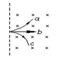 有一束粒子,以同一速度飞入匀强磁场中,在磁场里它们的轨迹分别如右图中a、b、c所示.已知磁场方向与速度方向垂直并指向纸内,关于这些轨迹的说法正确是