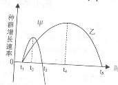 5如图表示一个生物群落中甲、乙两个种群的增长速率随时间变化的曲线,下列叙述错误的是