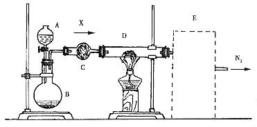 28.(16分)如下图,B中盛装的是一种固体物质,当A中的溶液滴入B内反应一段时间后,所得产物经装置C即得纯净气体X,D中盛装的是氧化铜,当X通入D时,氧化铜逐渐变为铜,最后从装置E中出来的气体是干燥纯净的氮气。
