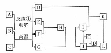 (18分)已知下面转化关系中A-L均表示一种中学化学常见的物质,其中反应①是工业上重要的反应,C为金属单质,E、F为气体单质。(图中反应生成的水未标出)