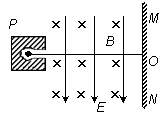 如图,铅盒P中的放射性物质从小孔中,不断向外辐射含有α、β、γ三种射线的放射线(α射线的速度0.1c,β射线的速度约为0.99c),空间未加电场和磁场时,右边荧光屏MN上仅在其中心O处有一光斑,若在该空间施加如图所示的互相垂直的匀强电场和匀强磁场后,荧光屏上显示出了两个亮点,关于此时各种射线在荧光屏上的分布情况,以下说法正确的是