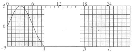 时,观察者看到B处恰好第三次出现波谷,(A、B、C处,横坐标分别为9、18、24),下列判断正确的是 ( )