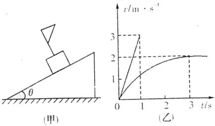 。若从静止开始下滑的速度图象如图(乙)中的曲线所示,图(乙)中的直线是