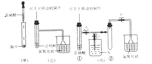 29.(16分)下图甲是课本中验证铜和浓硝酸反应的装置,乙、丙是师生对演示实验改进后的装置: