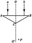 如图所示,A、B、C为等腰棱镜,a、b两束不同频率的单色光垂直AB边射入棱镜,两束光在AB面上入射点到D的距离相等,两束光折射后相交于图中的P点,以下判断正确的是