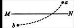 17.如图所示,MN是一负点电荷产生的电场中的一条电场线。一个仅受电场力作用的带正电粒子,从a到b穿越这条电场线的轨迹如图中虚线所示。下列结论正确的是