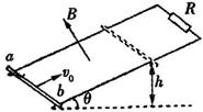 角,两轨道上端用一电阻R相连,该装置处于匀强磁场中,磁场方向垂直轨道平面向上,质量为m的金属杆ab,以初速度