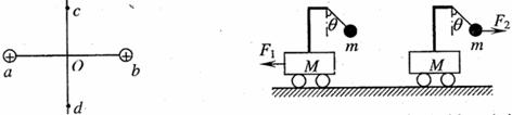 ,放在光滑的水平面上,小车横梁上用细线各悬挂一质量为