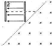 的匀强电场(电场仅限于两板之间),右极板的下端刚好处在一有界匀强磁场的边界(虚线所示)上,该边界与水平成45°夹角,边界线以右有垂直纸面向里的匀强磁场。一质量为