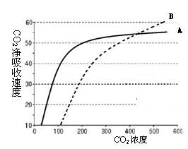 下图表示在适宜温度、水分和一定的光照强度下,两种植物的叶片在不同CO2浓度下CO2净吸收速度,下列叙述正确的是( )