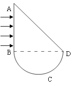 如图所示,ABCD为同种材料构成的柱形透明体的横截面,其中ABD部分为等腰直角三角形,BCD部分为半圆形,一束单色平行光从真空垂直射向AB或AD面,材料的折射率n=1.5,下列说法中正确的是(