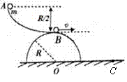 如图所示,光滑半球的半径为R,球心为O,固定在水平面上,其上方有一个光滑曲面轨道AB,高度为R/2.轨道底端水平并与半球顶端相切.质量为m的小球由A点静止滑下.小球在水平面上的落点为C,则( )