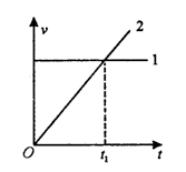 16.平抛运动可以分解为水平和竖直方向的两个直线运动,在同一坐标系中作出这两个分运动的v – t图线,如图所示,若平抛运动的时间大于2t1,则下列说法中正确的是( )