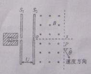 10.(16分)某一个粒子源可以放射出带正电的粒子,设粒子的质量为m、电荷量为q,它进入电势差为U的带窄缝的平行平板电极S1和S2间电场时,其速度为v0,经电场加速后,沿ox方向进入磁感强度为B、方向垂直纸面向外的有界匀强磁场,ox垂直平板电极S2,当粒子从P点离开磁场时,其速度方向与ox方向的夹角