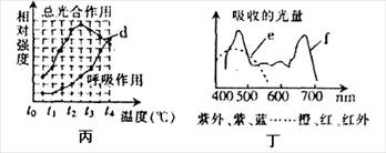D.丁图代表两类色素的吸收光谱,则e代表胡萝卜素