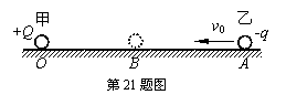 如图所示,一个电量为+Q的点电荷甲,固定在绝缘平面上的O点。另一个电量为-q及质量为m的点电荷乙,从A点以初速度v0沿它们的连线向甲运动,运动到B点静止。已知静电力常量为k,点电荷乙与水平面的动摩擦因数为μ,AB间距离为s。下列说法正确的是