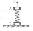 如图所示,一劲度系数k=400N/m的轻弹簧两端各焊接着一个质量均为m=8kg的物体A、B,竖立静止在水平面上。若加一竖直向上大小可调节的力F在物体A上,能使A开始向上做匀加速运动,经0.4s,B刚好对地面没有压力。(设整个过程弹簧均处于弹性限度内;重力加速度g取10m/s2。),求:
