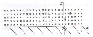 如图所示,x轴上方有一匀强磁场,磁感应强度方向垂直于纸面向里,大小为B,x轴下方有一匀强电场,电场强度的大小为E,方向与y轴的夹角