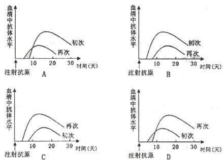 5.对健康小鼠分两次注射同种且相同剂量的抗原,并对体内血清中抗体水平进行测定,则下列与小鼠体内相应抗体水平变化相一致的是( )