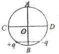 的两个点电荷放在圆周上,其位置关于AB对称且间距等于圆的半径,如图所示。要使圆心处的电场强度为零,可在圆周上再放一个适当的点电荷Q,则该点电荷Q( )