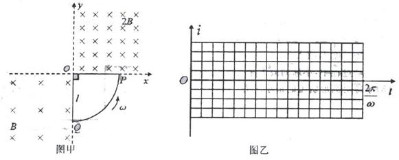 的Ⅰ、Ⅲ象限内有匀强磁场,第Ⅰ象限内的磁感应强度大小为2B,第Ⅲ象限内的磁感应强度大小为B,磁感应强度的方向均垂直于纸面向里。半径为