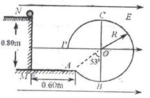 的带正电荷的小球(可视为质点),从平台上的端点N由静止释放,小球离开平台后恰好切入半径为