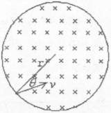 17.有一圆形边界的匀强磁场,方向垂直于纸面向里,如图所示。有一不计重力的带电粒子以一定速度进入该磁场,进入时,粒子速度方向与该位置磁场圆边界的半径成